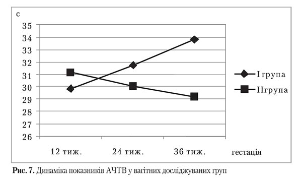 У ході дослідження значущої різниці середніх протромбінового індексу зафіксовано не було. Однак, незважаючи на граничні щодо нормативів значення АЧТВ в обох групах, спостерігалося поступове зменшення АЧТВ у ІІ групі, що достовірно відрізнялося від ситуації, що склалася у І групі із поступовим зростанням АЧТВ (р=0,00).